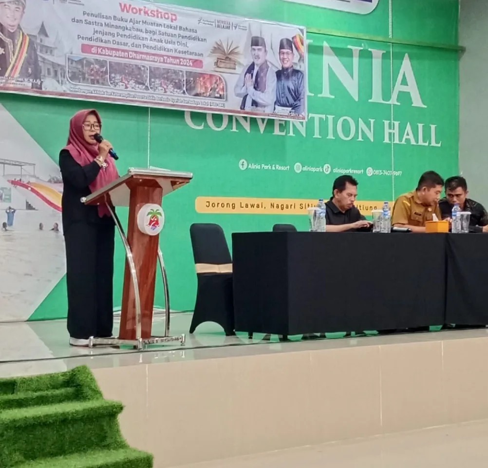 InfoLanggam – Dinas Pendidikan Dharmasraya melaksanakan kegiatan Workshop Penulisan Buku Ajar Muatan Lokal Bahasa dan Sastra Minangkabau jenjang PAUD, SD, SMP, dan Pendidikan Kesetaraan Tahun 2024 se-Dharmasraya.