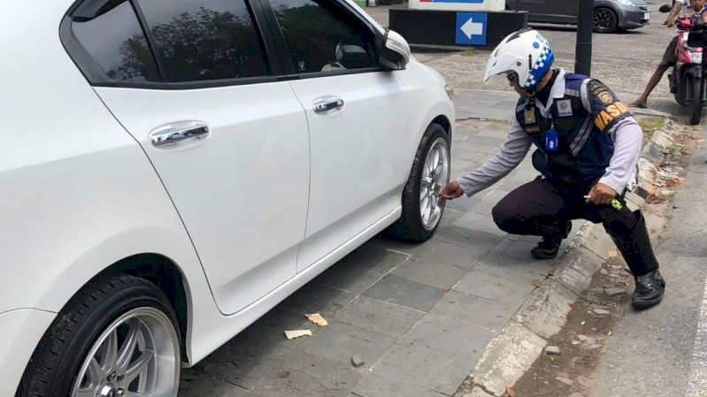 Dishub kemudian melakukan sosialisasi selama beberapa hari. Karena tak juga diindahkan, maka pada Kamis (23/2/2023) kendaraan yang parkir di trotoar dikempiskan bannya.
