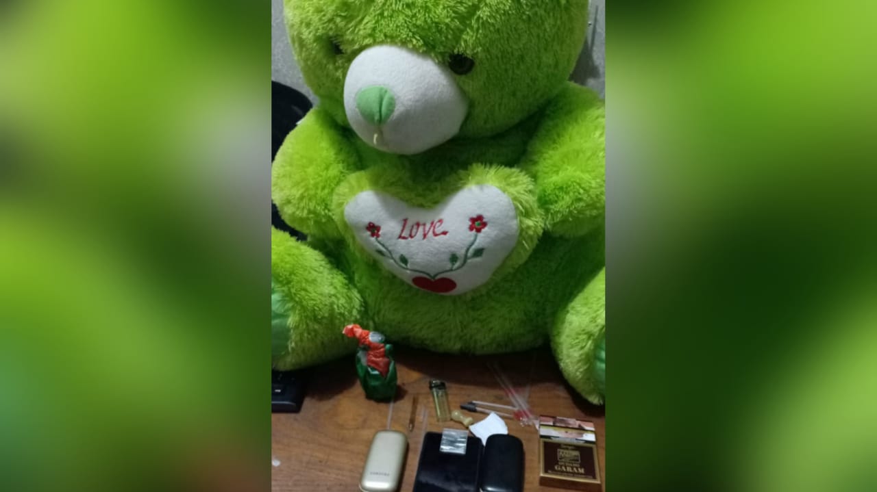 Saat digeledah, ditemukan satu paket kecil narkotika jenis sabu. Barang bukti ditemukan dengan dibungkus plastik klem warna bening di dalam kotak rokok yang disembunyikan di dalam sebuah boneka panda berwarna hijau.