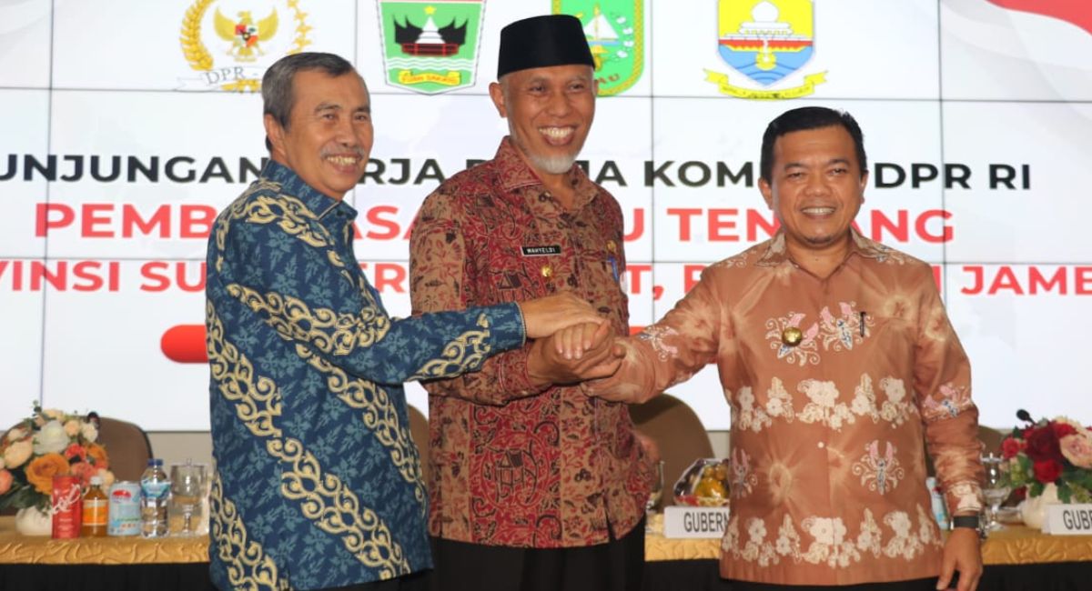 Langgam.id – Panitia kerja (Panja) Komisi II DPR RI membahas Rancangan Undang-Undang (RUU) tentang Provinsi Sumbar, Riau dan Jambi di Auditorium Gubernuran, Kamis (16/06/2022). Gubernur berharap undang-undang itu juga mengakomodir batas wilayah.