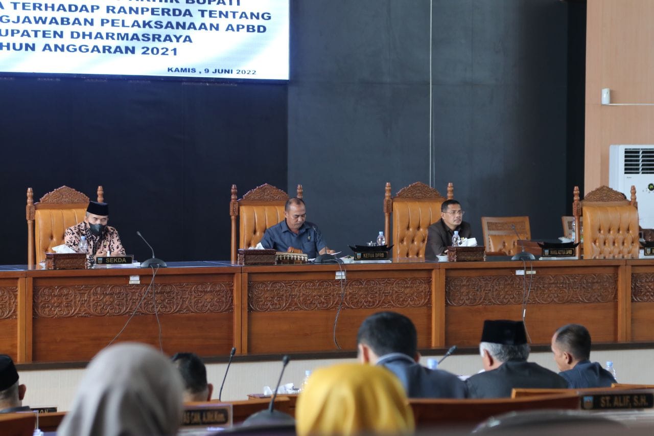 Acara ini dilaksanakan di Gedung DPRD Kabupaten Dharmasraya, Kamis, (9/6/2022). Rapat paripurna ini dipimpin oleh Ketua DPRD Dharmasraya, Pariyanto, Wakil Ketua DPRD, Adi Gunawan.