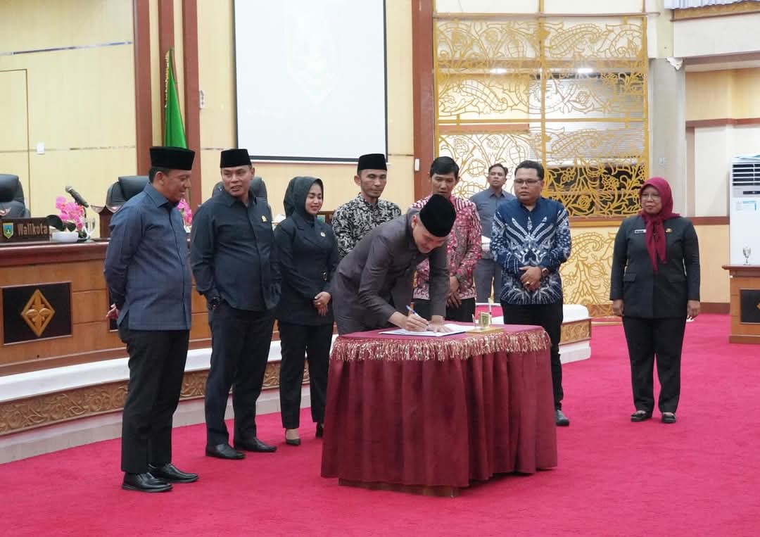 Penetapan disertai dengan penandatanganan berita acara oleh Penjabat (Pj) Wali Kota Sonny Budaya Putra, Ketua DPRD, Imbral, Wakil Ketua DPRD, Mardiansyah, dan Nurafni Fitri.