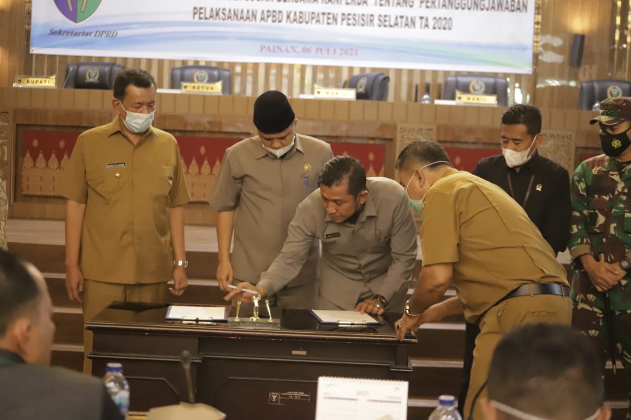 Bupati Pesisir Selatan, Rusma Yul Anwar mengapresiasi respon DPRD dalam pengesahan Ranperda Pertanggungjawaban Pelaksanaan APBD tahun 2020 menjadi Perda. Pihaknya, berjanji akan segera memproses Perda dengan menyampaikan ke gubernur untuk dievaluasi.