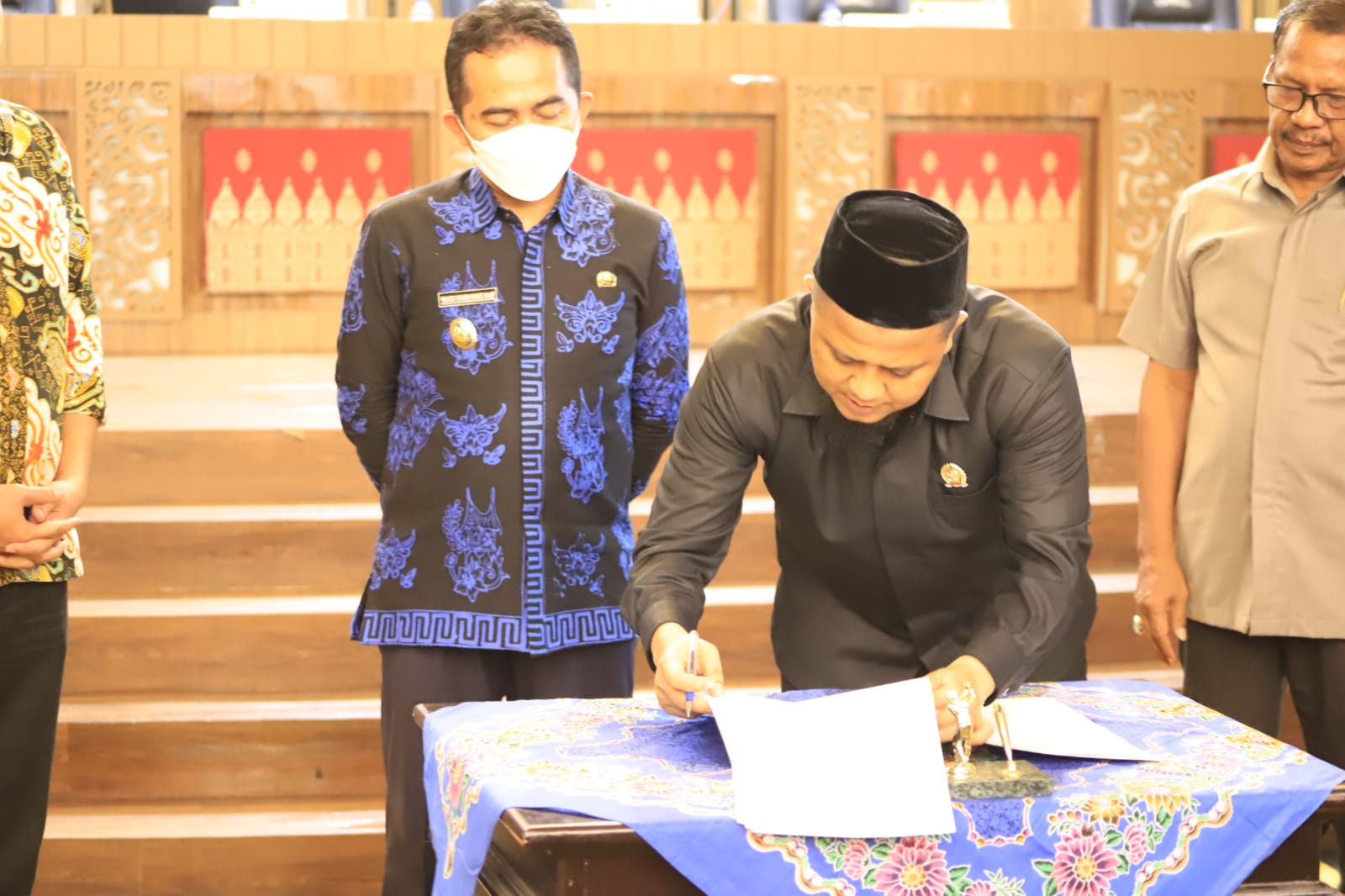 Penetapan Rancangan Peraturan Daerah (Ranperda) APBD Perubahan tahun 2021 menjadi Perda itu ditandai dengan penandatanganan bersama antara legislatif dan pemerintah daerah setempat.