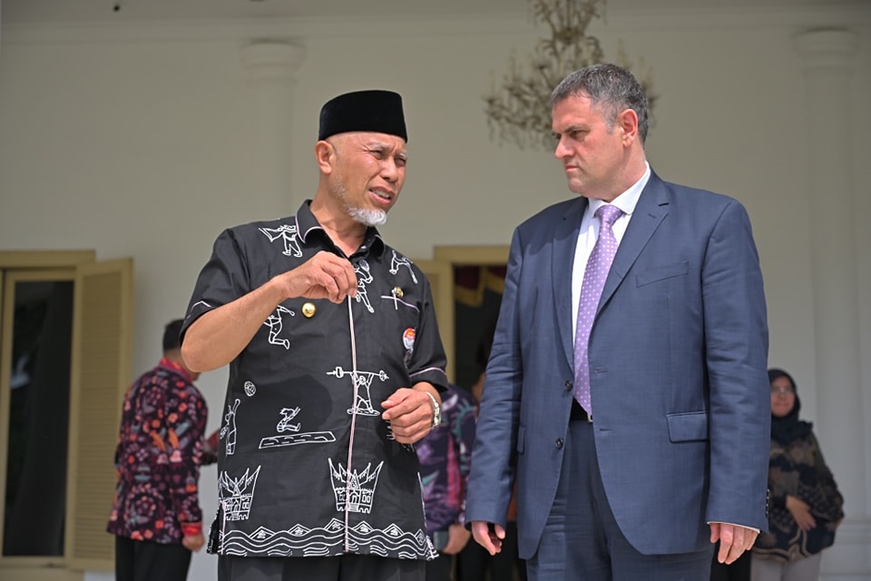 LanggamInfo–Gubernur Sumatera Barat (Sumbar), Mahyeldi Ansharullah menerima kunjungan Duta Besar (Dubes) Romania untuk Indonesia, H.E. Mr. Dan Adrian Bălănescu di Istana Gubernur Sumbar pada Kamis (30/1/2025).