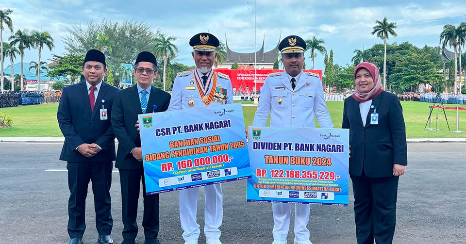 Langgam.id – Bank Nagari menyerahkan dividen tahun buku 2024 senilai Rp122,18 miliar kepada Pemerintah Provinsi Sumatera Barat. Penyerahan ini bertepatan dengan momen peringatan Hari Ulang Tahun Kemerdekaan Republik Indonesia ke-80, menjadi bentuk kontribusi nyata bank dalam mendukung pembangunan daerah.