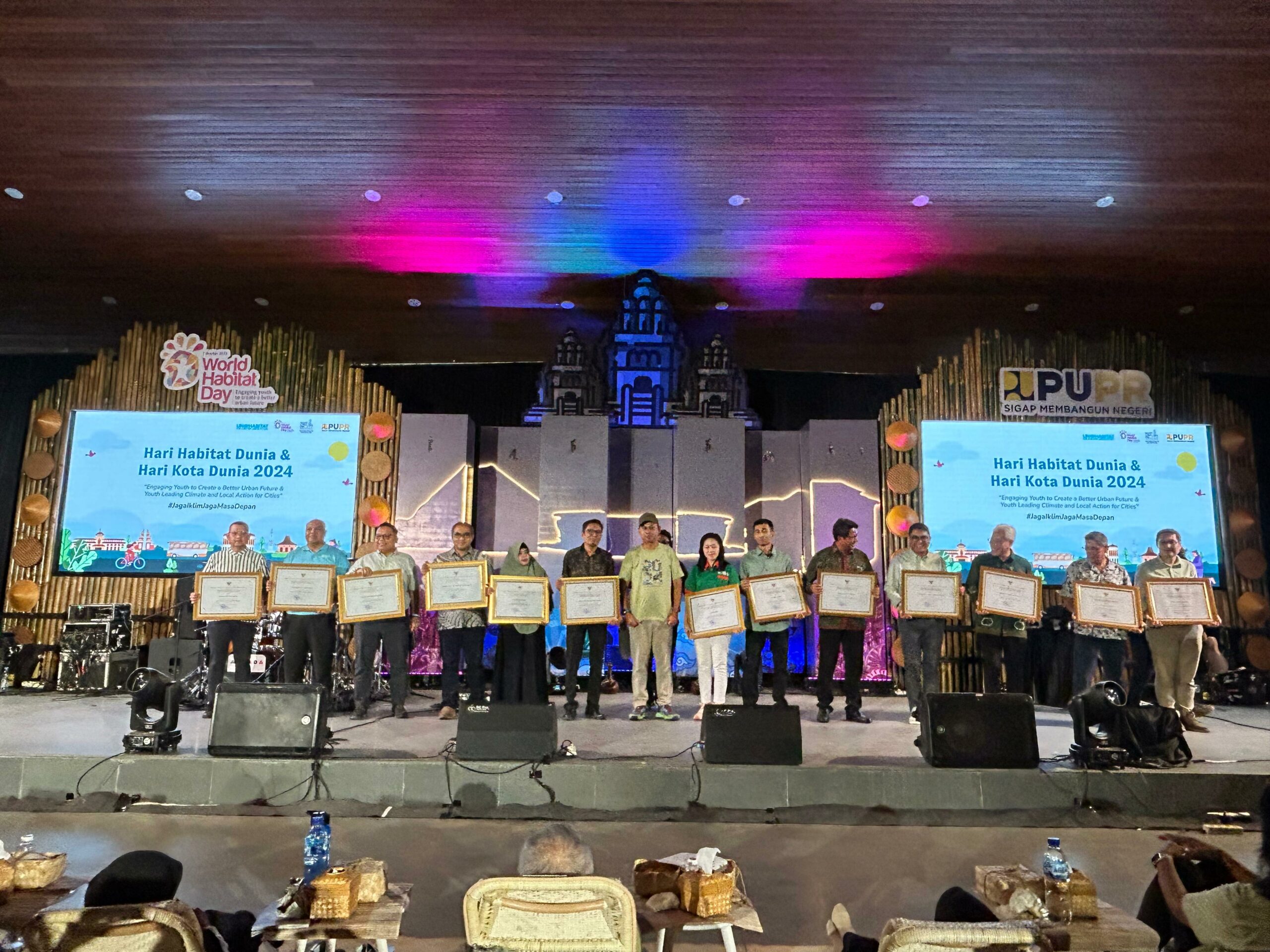 Penghargaan itu diserahkan oleh Dirjen Perumahan Kementerian PUPR, Iwan Suprijanto kepada manajemen PT Semen Padang diwakili Kepala Unit Corporate Social Responsibility (CSR) PT Semen Padang Ilham Akbar pada acara Puncak Hari Habitat Dunia – Hari Kota Dunia (HHD – HKD) di Gelanggang Inovasi dan Kreativitas (GIK) Universitas Gadjah Mada (UGM), Sabtu (12/10/2024).