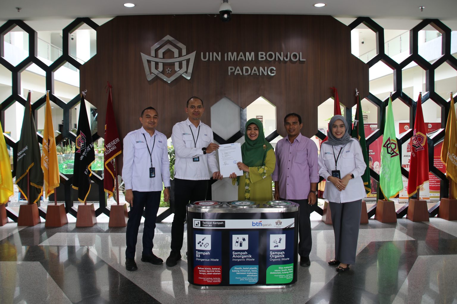 InfoLanggam — BTN Syariah memberikan bantuan berupa tempat sampah kepada Universitas Islam Negeri (UIN) Imam Bonjol Padang dalam rangka mendukung terciptanya lingkungan kampus yang bersih dan berkelanjutan.