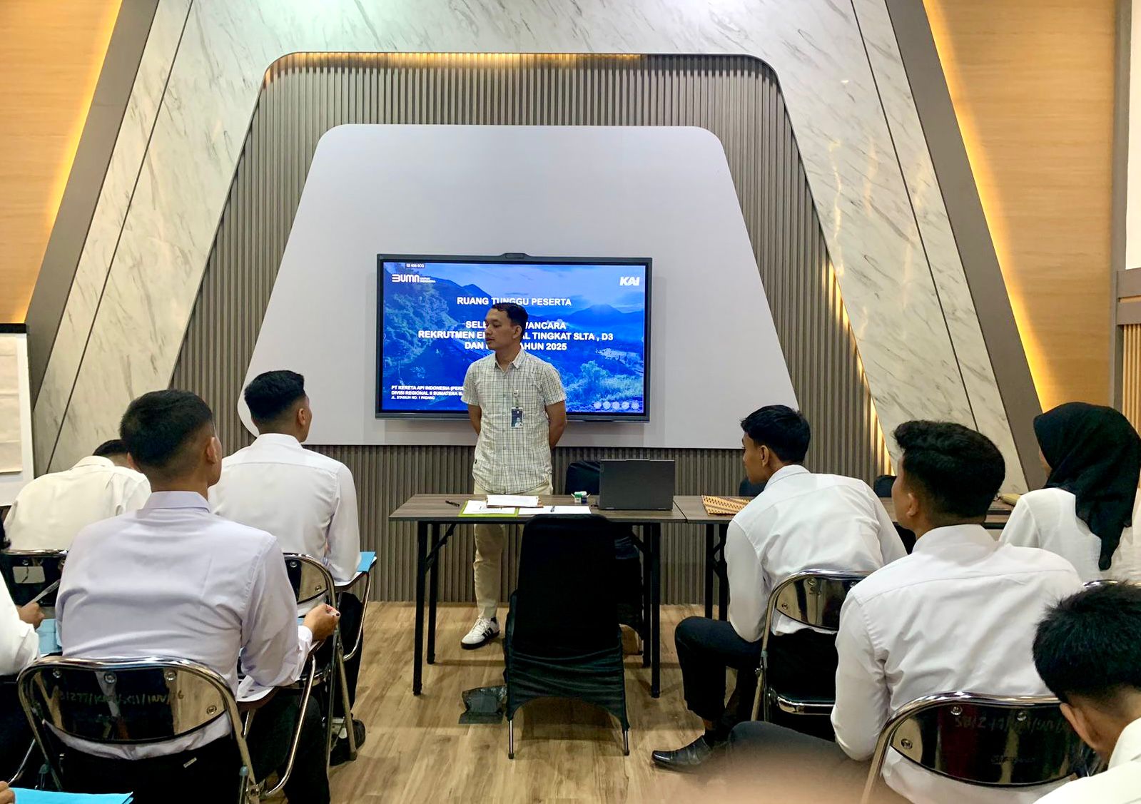 Kepala Humas KAI Divre II Sumbar, Reza Shahab mengatakan bahwa registrasi rekrutmen eksternal tingkat SLTA, D3, dan D4/S1 Tahun 2025 yang dibuka pada 30 Agustus hingga 1 September 2025 yang lalu melalui laman resmi https://e-recruitment.kai.id, kini masuk tahap seleksi wawancara yang dilaksanakan mulai hari Senin-Jum’at (10-14 November 2025) di kantor Divre II Sumbar.