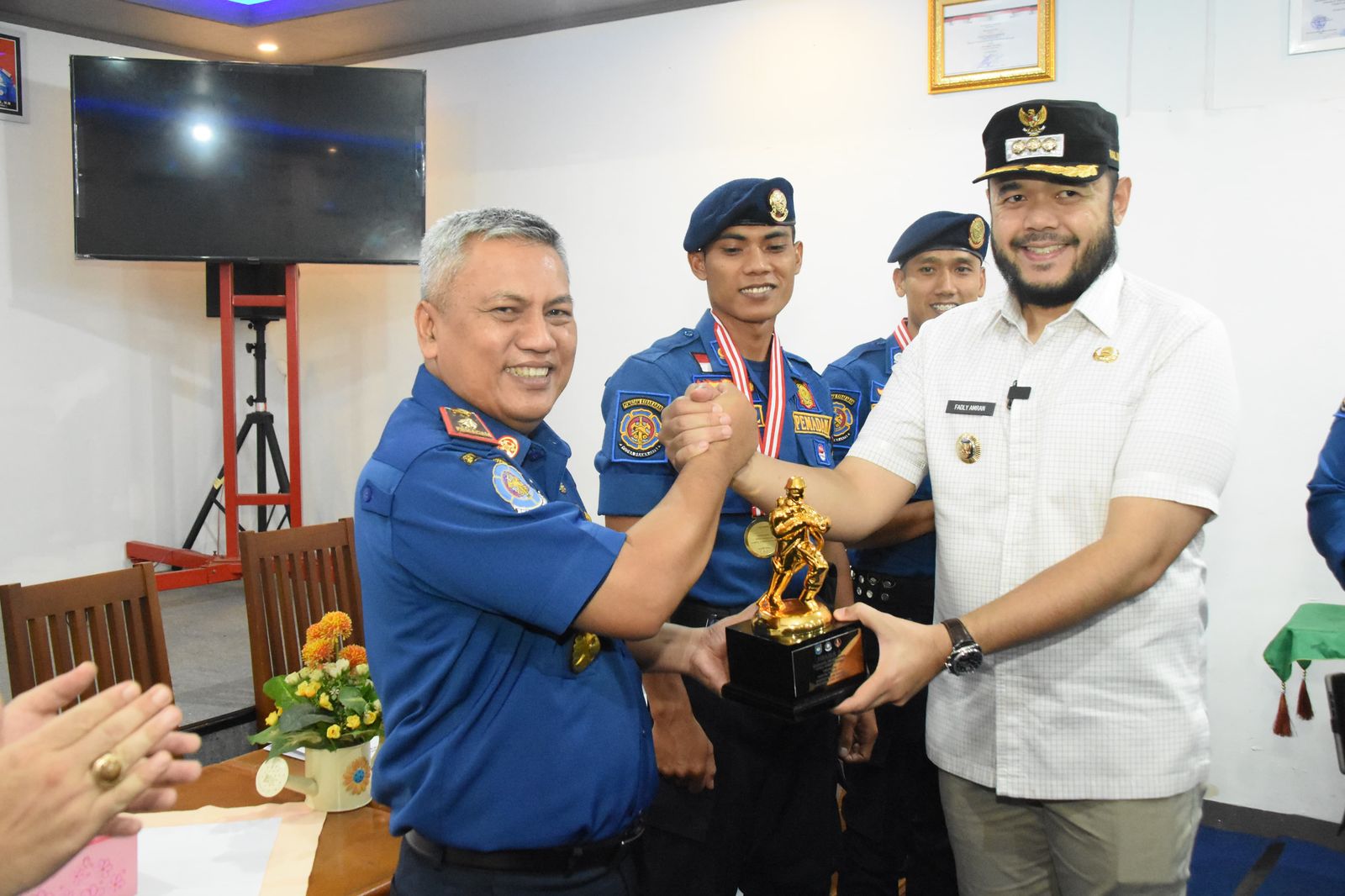Sebagai bentuk apresiasi atas prestasi yang diraih, Fadly Amran menyerahkan reward sebesar Rp10 juta bagi pasukan fire fighter berprestasi tersebut.