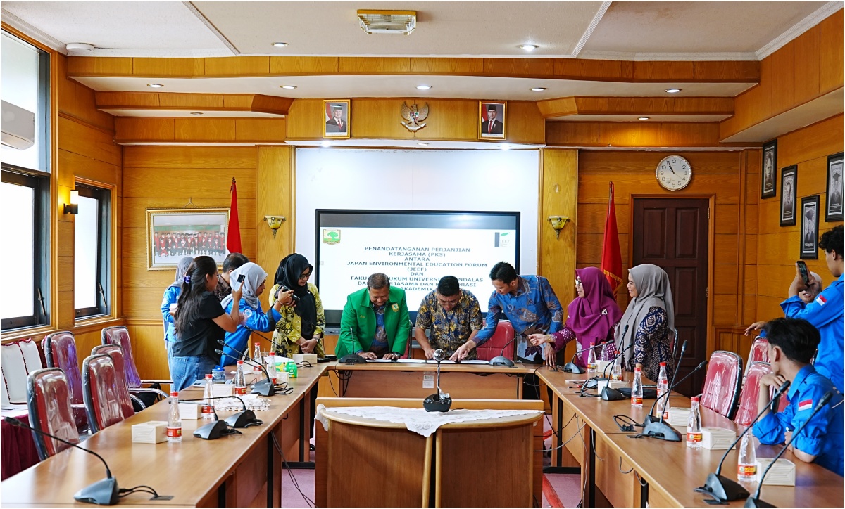 Langgam.id — Fakultas Hukum Universitas Andalas (UNAND) memperluas jejaring internasional dengan menjalin kerja sama bersama Japan Environmental Education Forum (JEEF). Penandatanganan Perjanjian Kerja Sama (PKS) berlangsung di Gedung Dekanat Fakultas Hukum UNAND, Kampus Limau Manis, Kamis (23/10/2025).