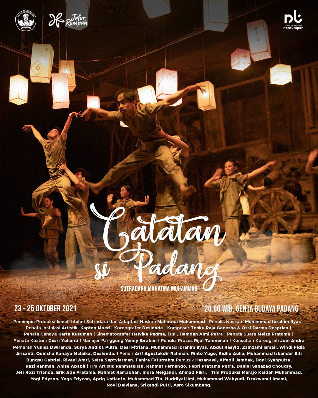 Pementasan tersebut berlangsung 23 sampai 25 Oktober 2021 pukul 20.00 WIB di Gedung Genta Budaya, Kota Padang, Sumatra Barat (Sumbar).