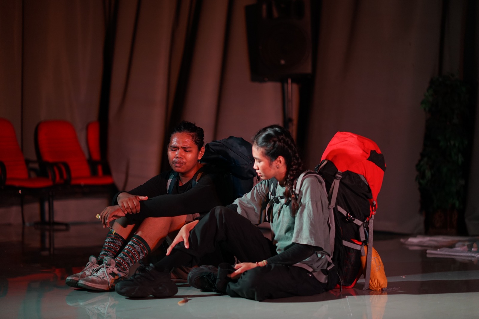 Unit Kegiatan Seni Universitas Baiturrahmah yang tampil pada malam Jumat mengangkat karya Rahmat Hidayat dengan judul Krisis.