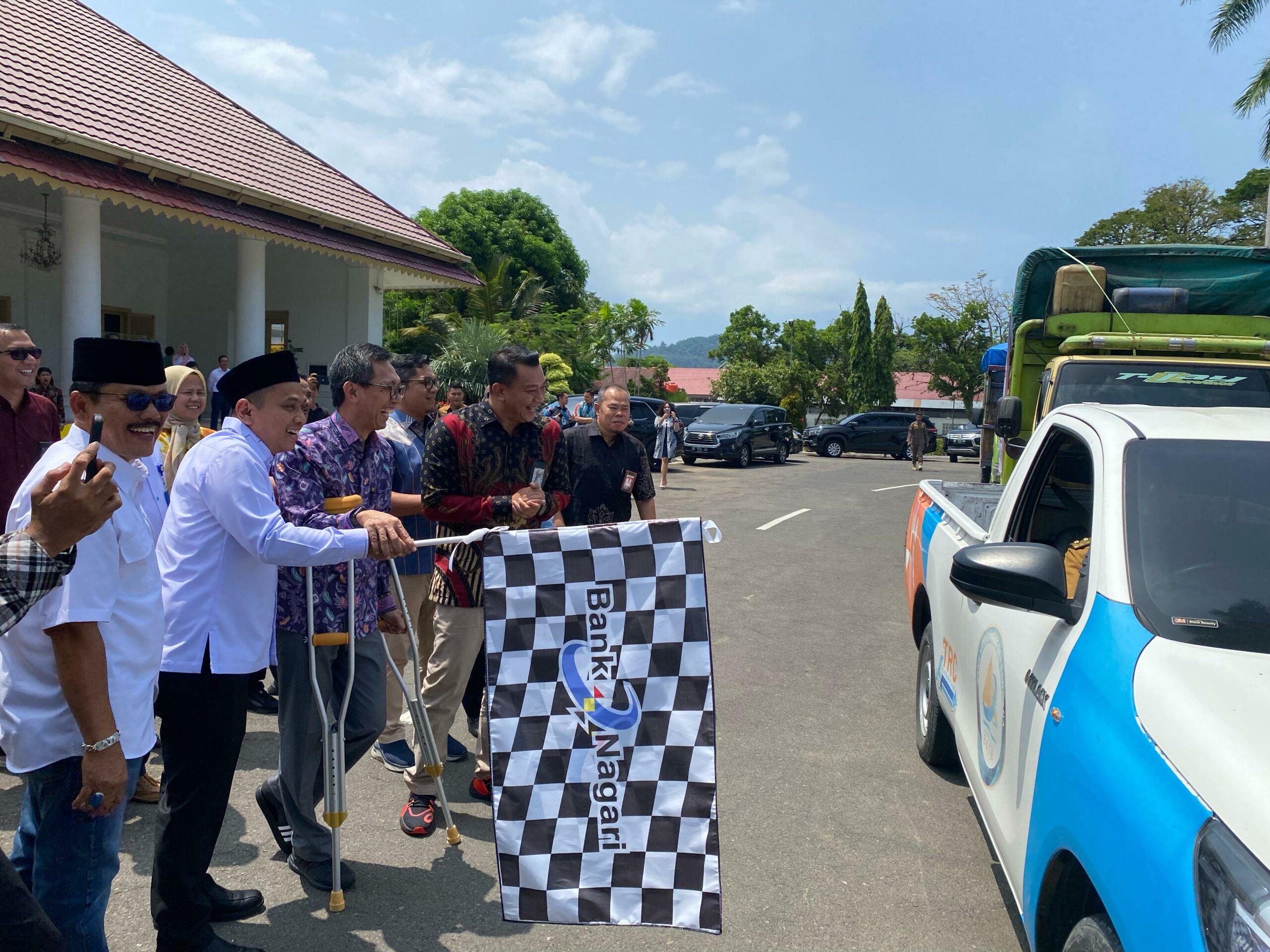 Bantuan tersebut diserahkan langsung oleh Ketua FK-IJK Sumbar Gusti Candra kepada Wakil Gubernur Sumbar Audy Joinaldy, disaksikan para pimpinan lembaga keuangan yang tergabung di FK-IJK. Antara lain tampak hadir Pembina FK-IJK Sumbar sekaligus Kepala OJK Sumbar Guntar Kumala, Ketua Perbarindo Sumbar Syofian Sara, Kepala Cabang PT Asuransi Bangun Askrida Padang Roni Krysbansi, dan Pemimpin Bank Nagari Cabang Utama sekaligus Sekretaris FK-IJK Sumbar Roni Edrian.