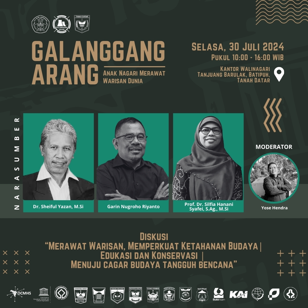 Selain pameran, juga akan ada Diskusi Cagar Budaya Tangguh Bencana pada 30 Juli 2024 di Aula Kantor Walinagari Nagari Tanjung Barulak. “Pemanfaatan cagar budaya WTBOS menjadi ruang publik baru akan menjadi tema sentral Galanggang Arang 2025 mendatang,” kata Edy.