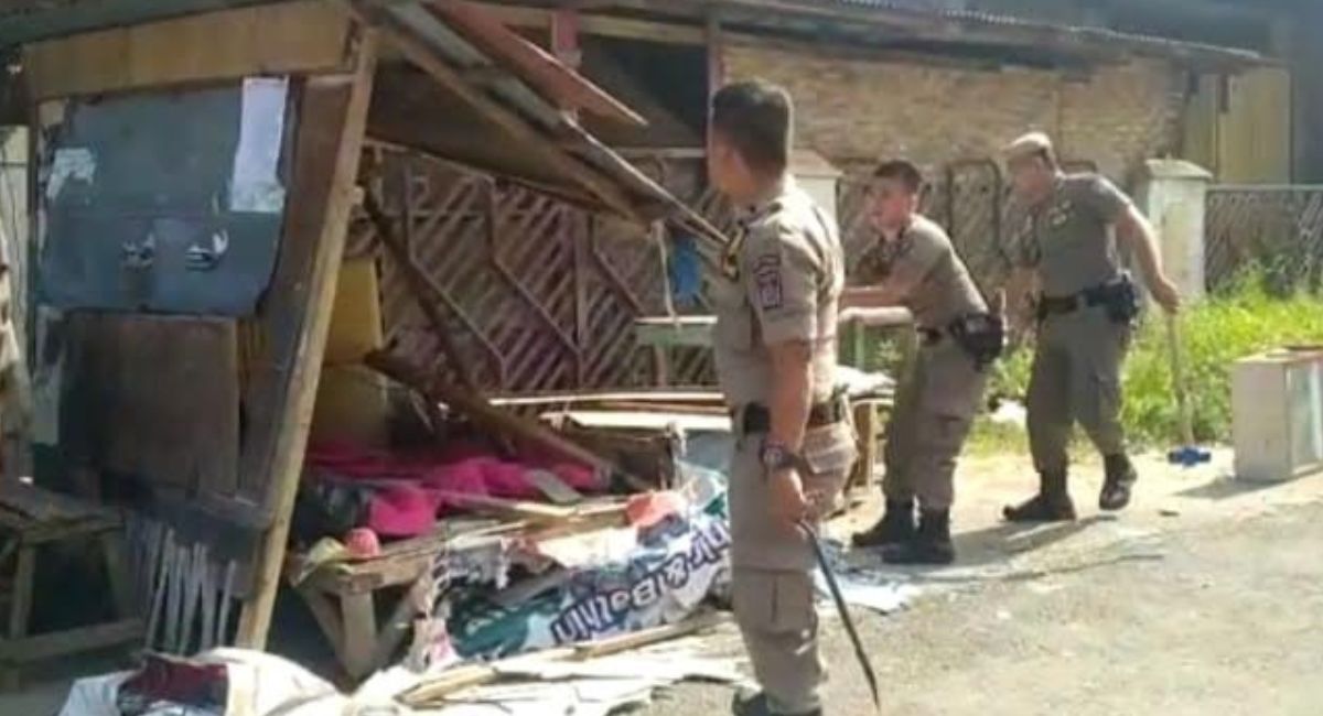 Langgam.id – Lapak pedagang yang berjualan di Simpang Empat Perumahan Azizi terpaksa dibongkar personel Satpol PP Padang karena mengganggu akses lalu lintas, Kamis pagi (14/7/2022).