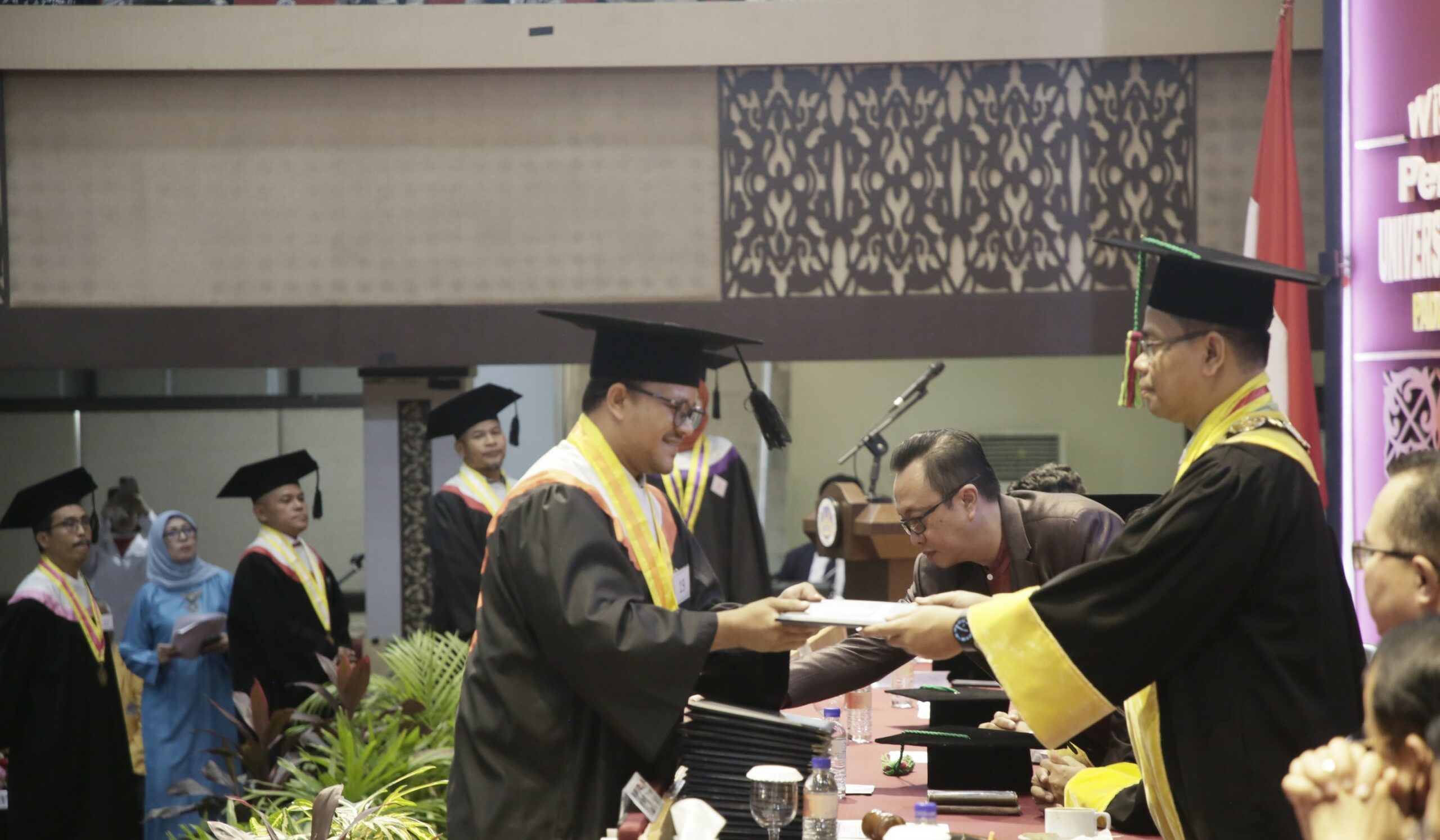 Turut hadir pada wisuda hari ini, Ketua dan Sekretaris Majelis Wali Amanat, Ketua dan Sekretaris Senat Akademik Universitas, Wakil Rektor I,II, III dan IV, Dekan dan Wakil Dekan, Direktur dan Wakil Direktur Sekolah Pascasarjana serta Sekolah Vokasi, Kepala dan Sekretaris Lembaga, Kepala dan Sekretaris Badan, Kepala Biro Selingkungan, kepala dan Sekretaris SPI dan Kepala UPT, Kepala Pusat, Kepala Kantor. Kemudian Kepala dan Sekretaris Departemen, koordinator Program Studi serta Kepala Bagian.