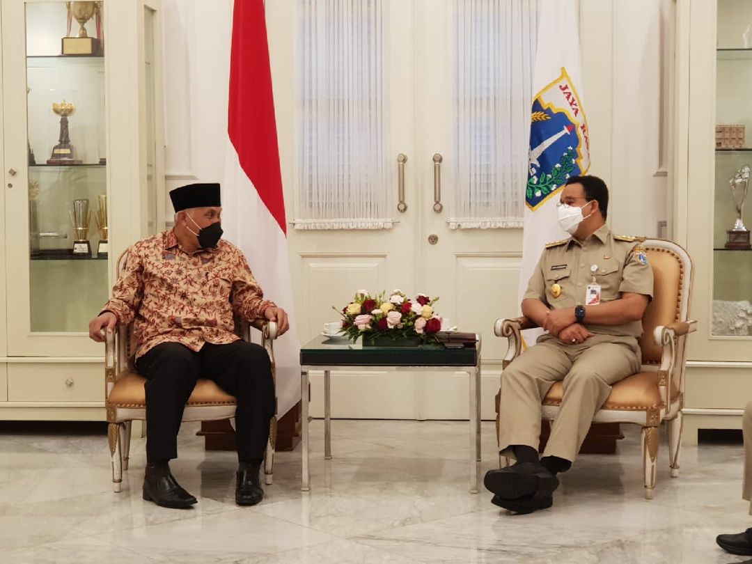 Langgam.id – Gubernur Sumatra Barat (Sumbar) Mahyeldi bertemu dengan Gubernur DKI Jakarta Anies Baswedan, Selasa pagi (25/5/2021).
