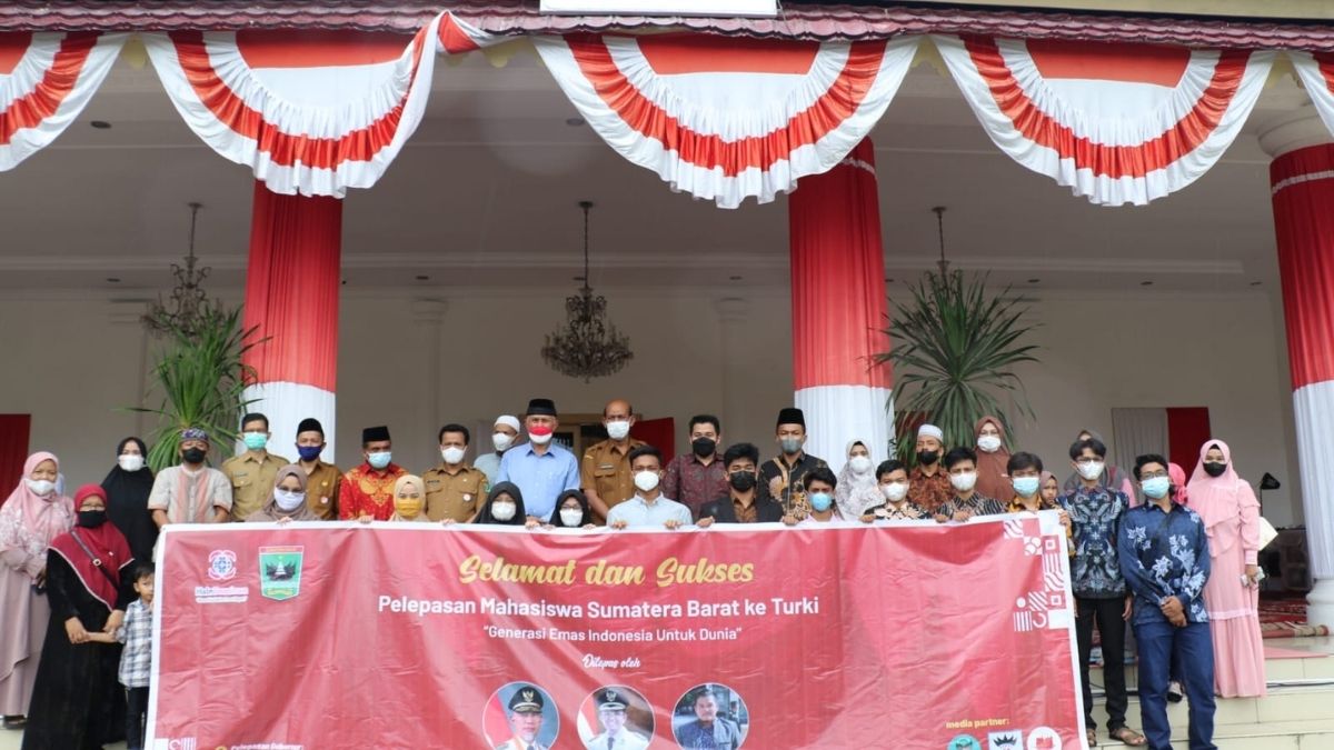 Langgam.id – Gubernur Sumatra Barat (Sumbar) Mahyeldi secara simbolis melepas keberangkatan 14 mahasiswa penerima beasiswa melanjutkan studi ke 7 universitas di Turki, Senin (16/8/2021).