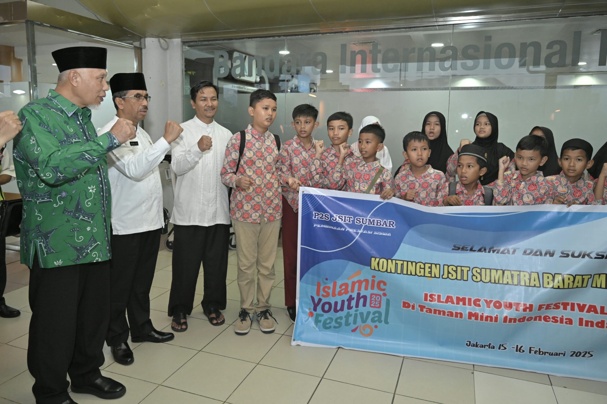 Langgam.id–Gubernur Sumatera Barat (Sumbar), Mahyeldi Ansharullah, melepas 22 pelajar Sekolah Dasar (SD) Kontingen Jaringan Sekolah Islam Terpadu (JSIT) Sumbar, yang akan mengikuti perlombaan pada Islamic Yout Festival di Jakarta, Jumat (14/2/2025) di Bandara Internasional Minangkabau (BIM).