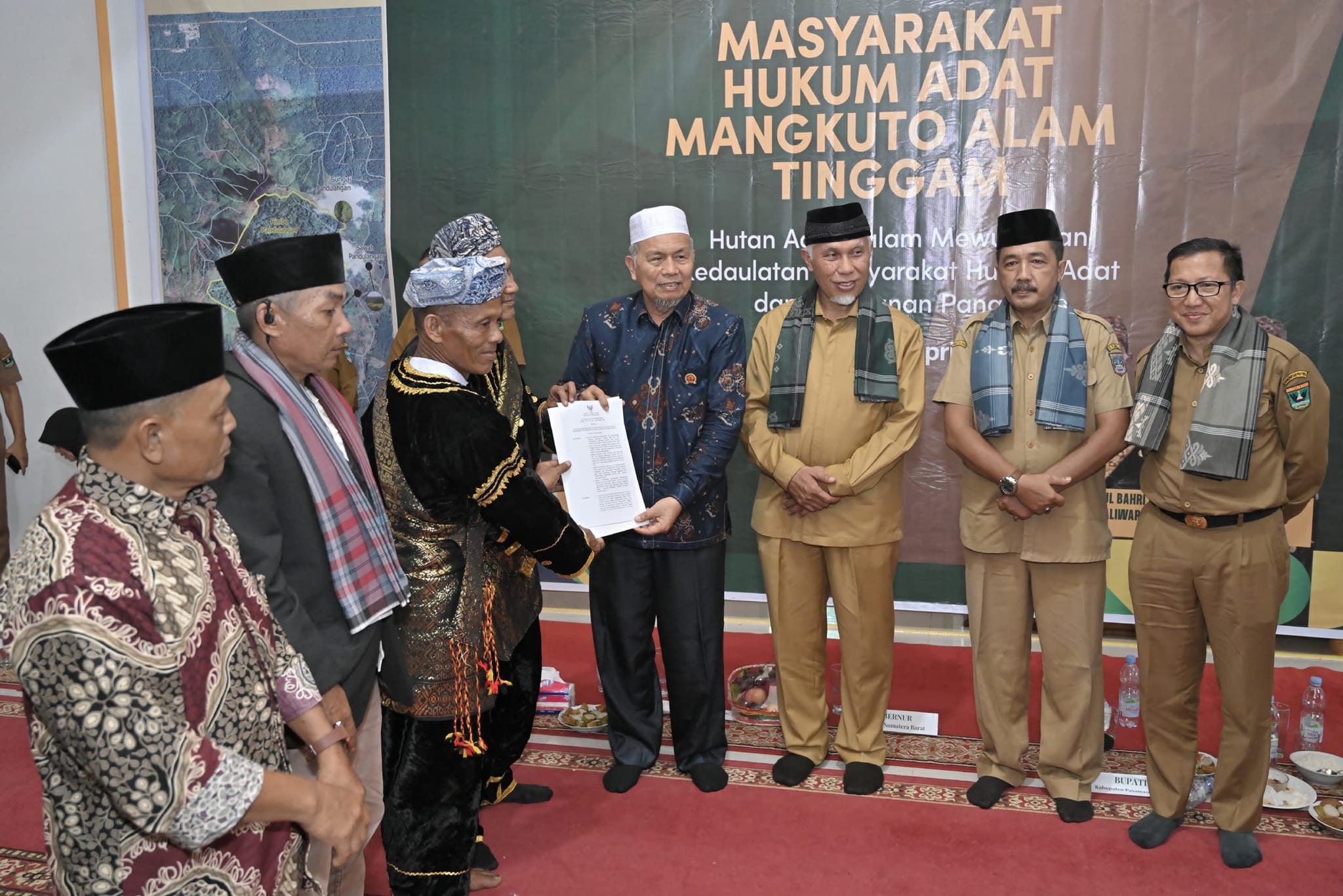 Langgam.id – Gubernur Sumatera Barat, Mahyeldi Ansharullah, memberikan apresiasi setinggi-tingginya kepada Masyarakat Hukum Adat Mangkuto Alam Tinggam, Nagari Sinuruik, Kabupaten Pasaman Barat. Apresiasi ini diberikan atas komitmen masyarakat dalam menjaga kelestarian hutan adat, yang berujung pada usulan pengakuan dan penetapan hutan adat tersebut oleh negara.