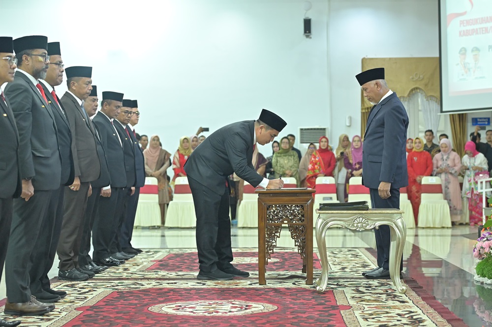 Langgam.id-Gubernur Sumatera Barat (Sumbar), Mahyeldi Ansharullah mengukuhkan sembilan Penjabat sementara (Pjs) Kepala Daerah Kabupaten/Kota serta menyerahkan tugas sebagai Gubernur kepada Wakil Gubernur (Wagub) Audy Joinaldy, yang ditunjuk Mendagri sebagai Pelaksana tugas (Plt) Gubernur Sumbar hingga 25 November 2024 mendatang.