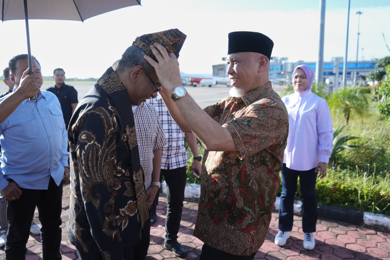 Langgam.id — Gubernur Sumatera Barat, Mahyeldi Ansharullah, menyambut kedatangan Kepala Kejaksaan Tinggi (Kajati) Sumatera Barat yang baru, Muhibuddin, di ruang VIP Bandara Internasional Minangkabau (BIM), Sabtu (25/10/2025).