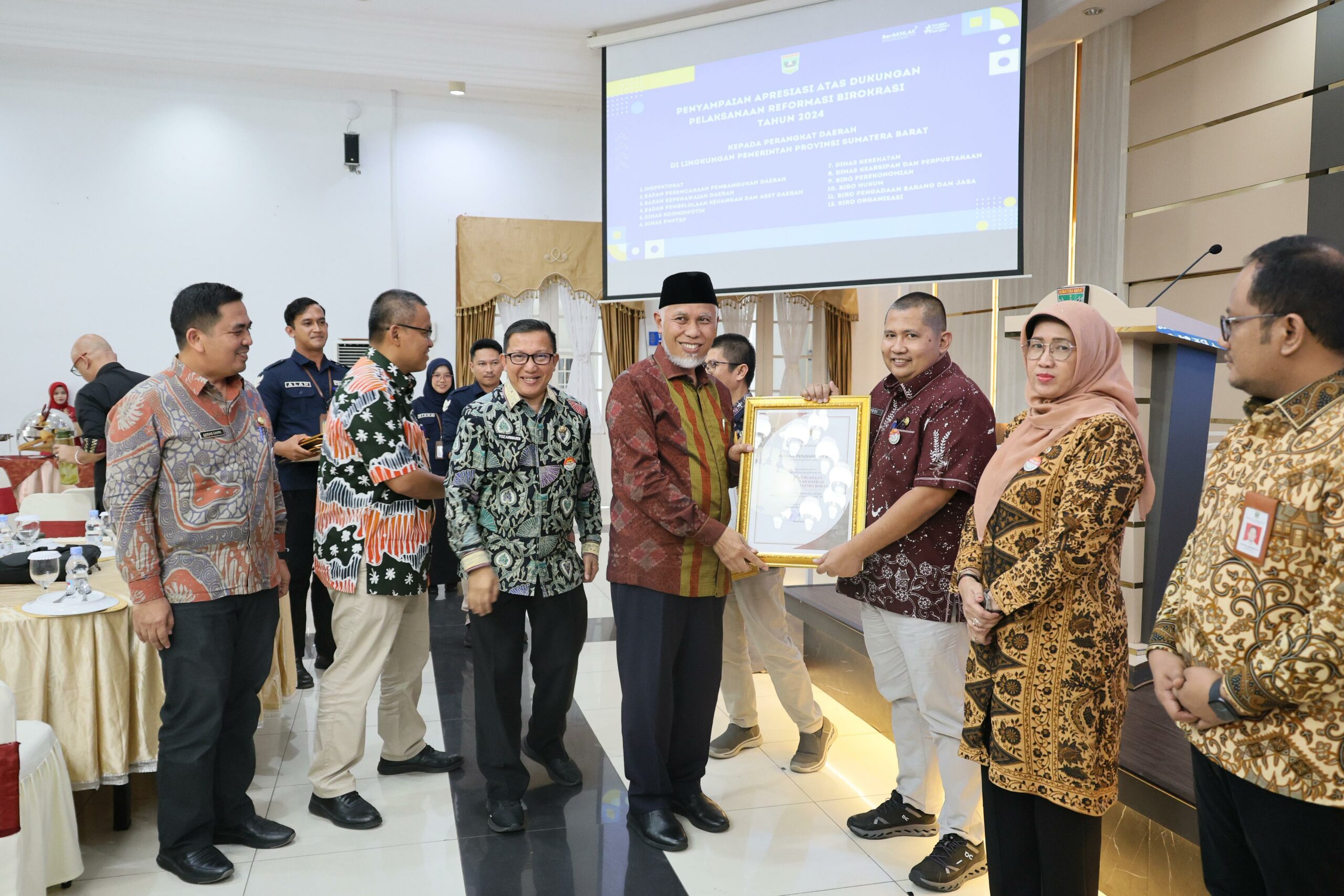 Atas kinerja positif dalam capaian Indeks Reformasi Birokrasi, Pemprov Sumbar berhasil meraih dua anugerah. Pertama, berhasil meraih predikat A, lalu yang kedua, Pemprov Sumbar juga ditetapkan sebagai provinsi terbaik se Pulau Sumatera untuk tahun 2024 oleh Kemenpan RB.