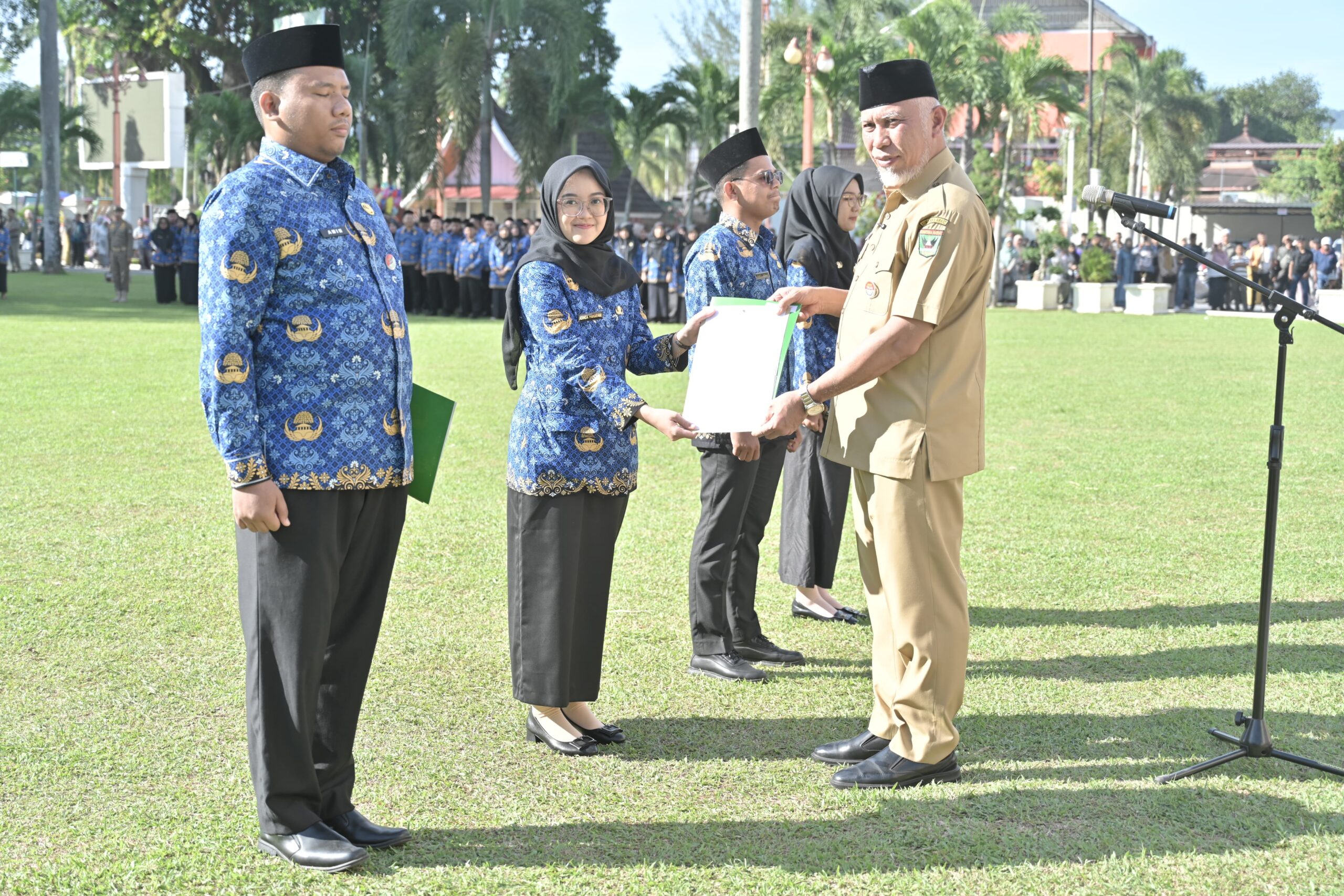 Langgam.id – Sebanyak 1.475 Aparatur Sipil Negara (ASN) baru resmi menerima Surat Keputusan (SK) pengangkatan dari Gubernur Sumatera Barat, Mahyeldi Ansharullah, dalam sebuah upacara yang berlangsung di halaman Kantor Gubernur Sumbar pada Selasa (27/5/2025).