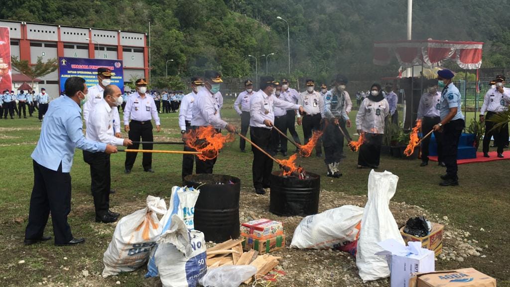 “Kami kan rutin melakukan sidak. Hasilnya, telah disita sejumlah barang bukti dan itulah yang kami musnah tadi,” jelasnya.
