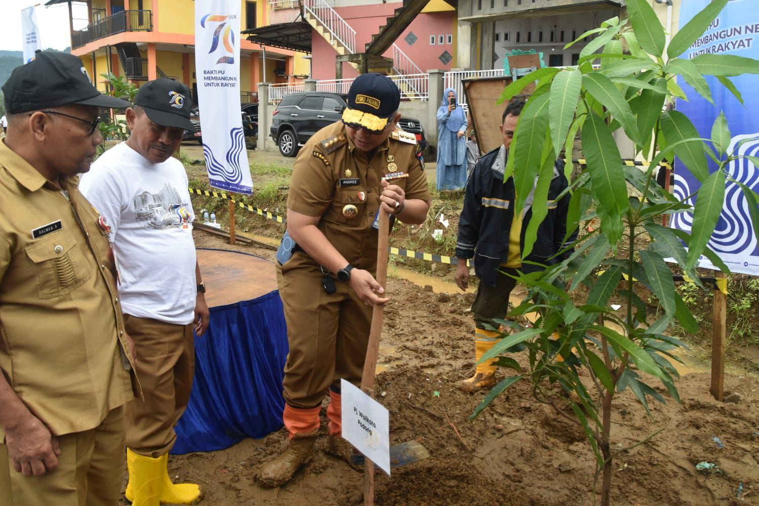 “Kali ini khusus Hari Bakti PU ke-79, kita lakukan penanaman bersama Pemerintah Provinsi, Pemerintah Kota Padang, dan Forkopimda Sumbar, pohon produktif di kawasan pengendalian banjir Batang Kandis,” ujarnya.