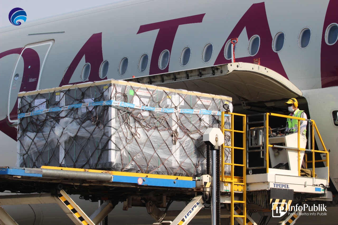 Vaksin Covid-19 AstraZaneca siap pakai tiba di Indonesia. (foto: Info Publik)
