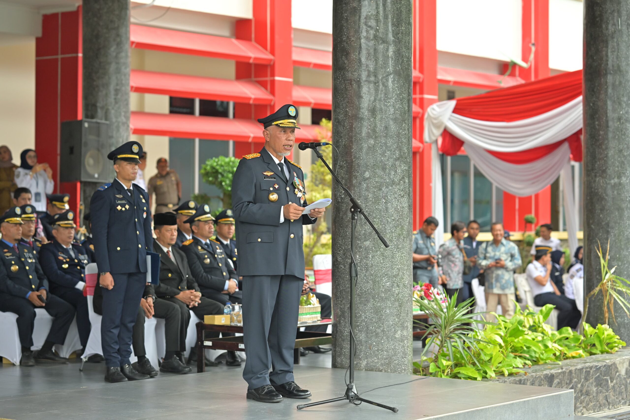 Langgam.id –Gubernur Sumatera Barat (Sumbar), Mahyeldi Ansharullah, bertindak selaku Inspektur Upacara (irup) pada peringatan Hari Perhubungan Nasional Tahun 2024. Di samping membacakan amanat Menteri Perhubungan (Menhub) RI, Gubernur juga menyampaikan pentingnya seluruh insan perhubungan untuk terus meningkatkan kualitas pelayanan transportasi di Sumbar.