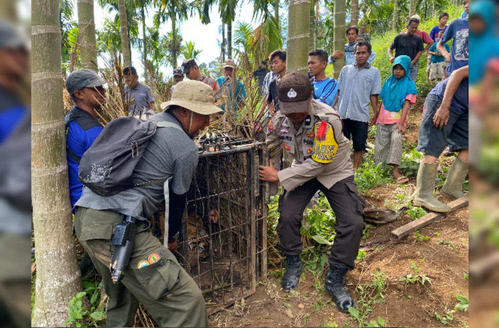“Minggu, 4 Februari 2024 sekira pukul 05.43 WIB, satwa harimau sumatra berjenis kelamin betina dengan panjang sekitar 160 cm dan berat sekitar 70 kg masuk ke kandang jebak dengan umpan seekor kambing. Pengamanan sekitar lokasipun dilakukan oleh tim bersama aparat TNI-POLRI, pihak Kecamatan dan Pemerintahan Nagari,” ujarnya.