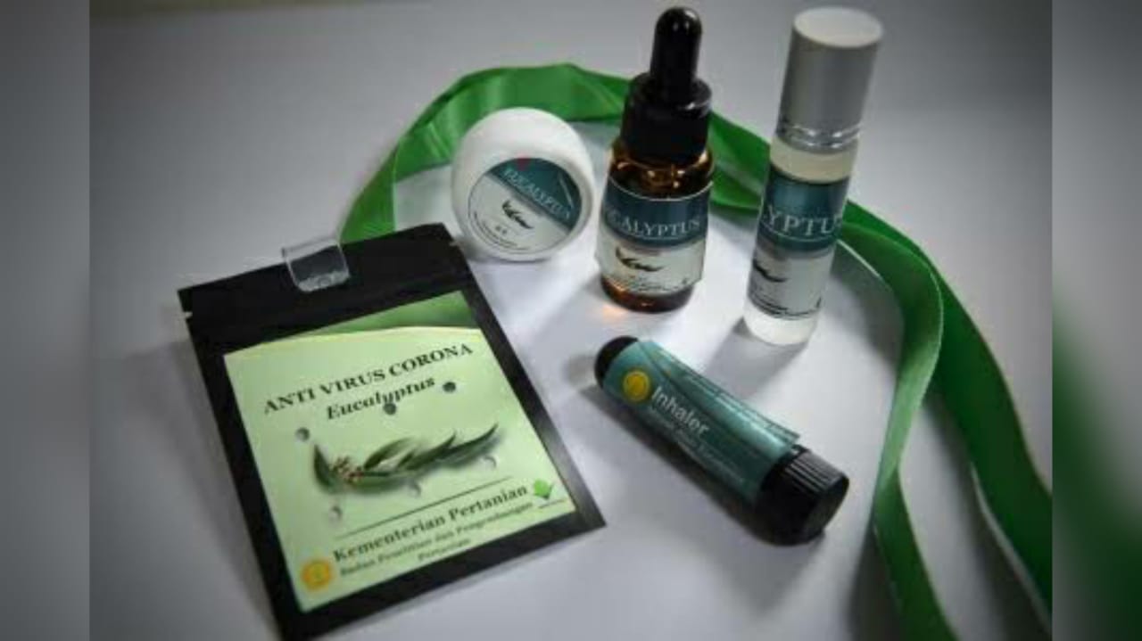 Menurutnya, eucalyptus bukan dijadikan serum namun dikemas dalam bentuk kalung, inhaler, roll on, salep, hingga difuser. “Produk Kementan ini bertujuan untuk menjadi tameng atau perisai terhadap penyebaran virus corona yang diketahui menyebar melalui droplet atau percikan. Aroma terapi dari Eucalyptus inilah yang mampu membunuh virus Corona sampai 80% ketika dipakai selama 30 menit. Ke depannya akan dikembangkan lebih lanjut,” katanya.