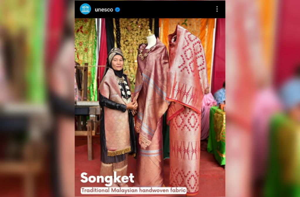 Heboh akun instagram @unesco posting songket sebagai pakaian tradisional dari Malaysia. Dalam foto yang ditampilkan Unesco, terlihat