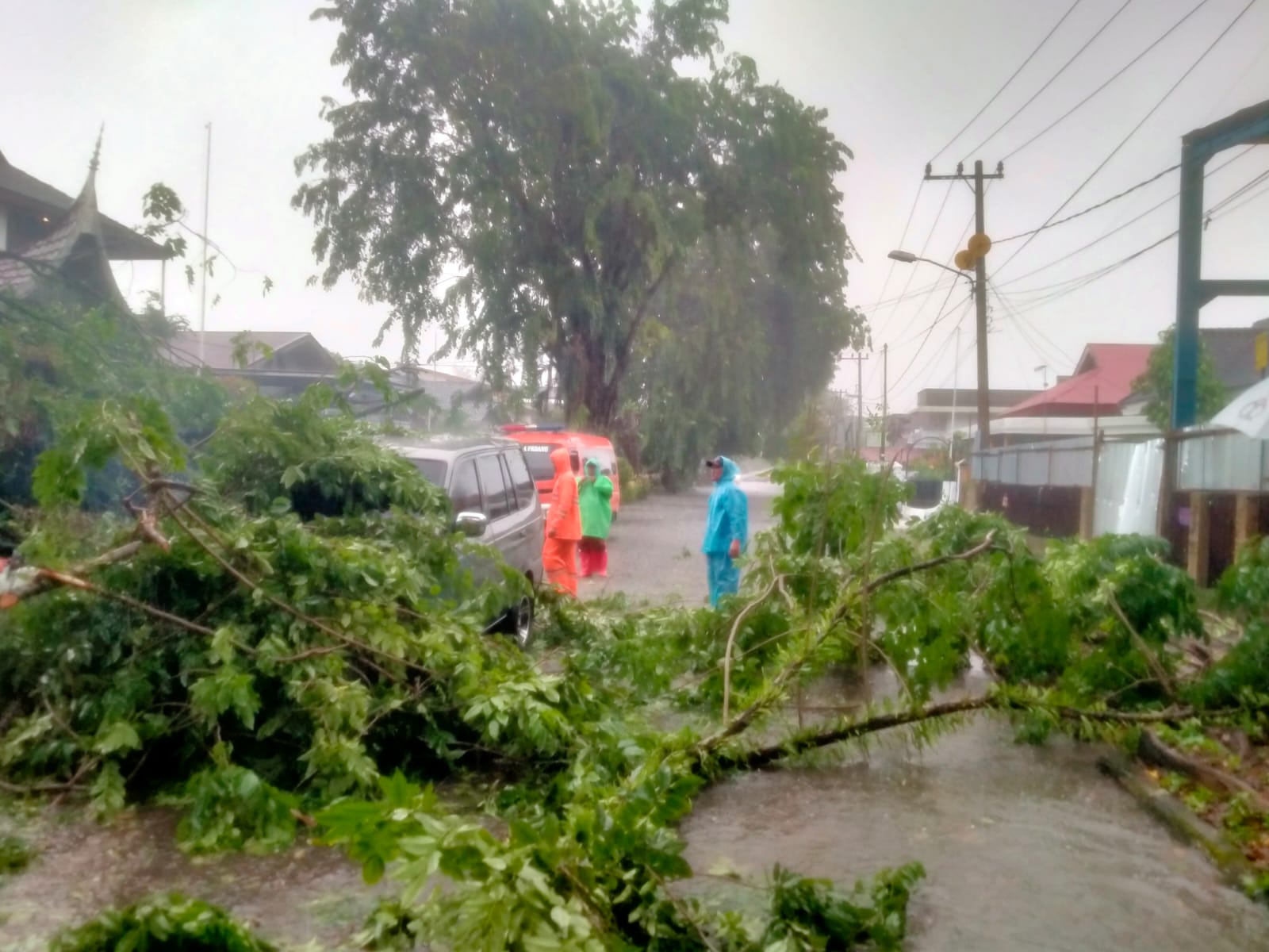 1. Jalan Sumatra, Kelurahan Ulak Karang Utara, Kecamatan Padang Utara. Pohon menghambat akses jalan dan menimpa rumah.