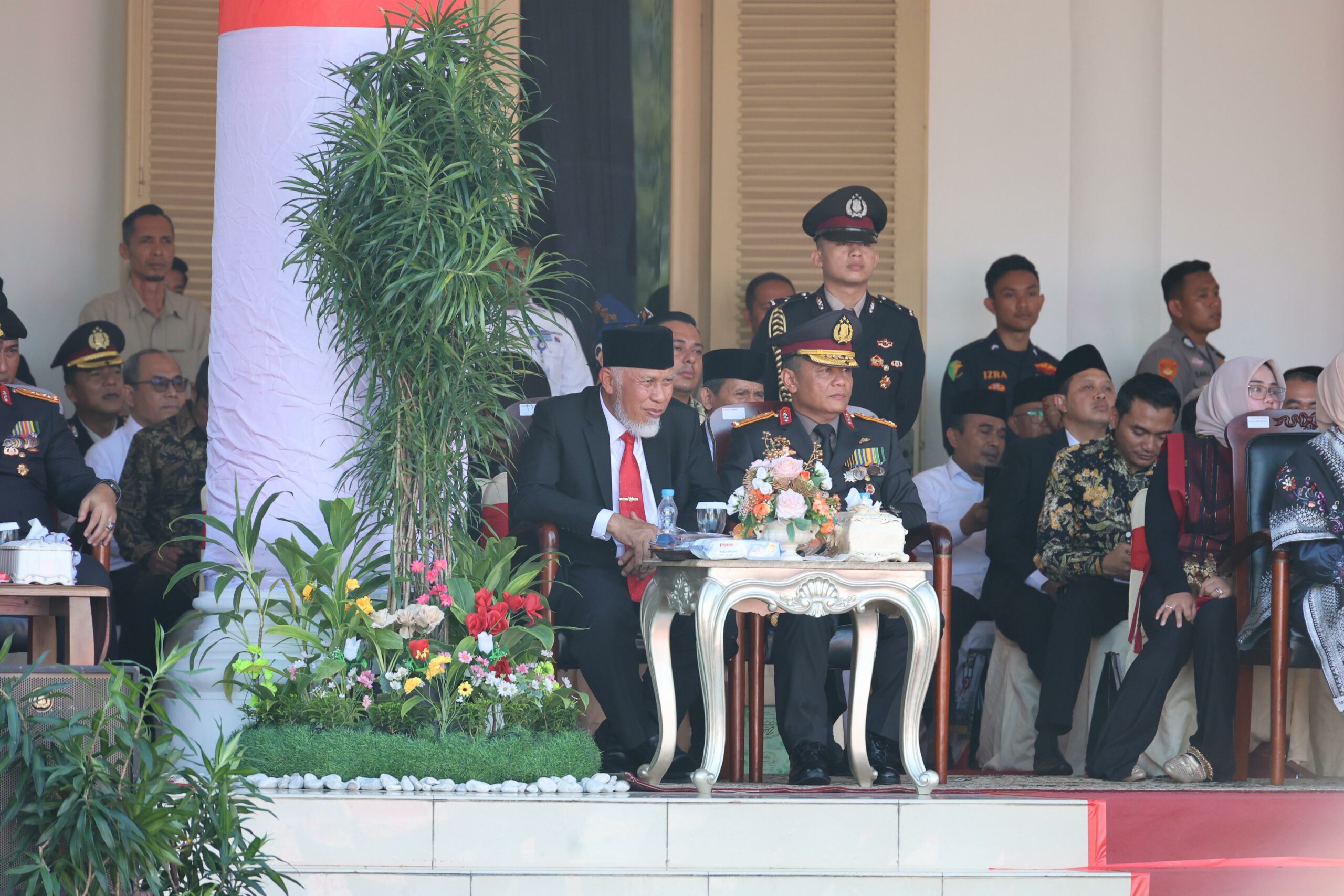 “Atas nama pemerintah dan seluruh masyarakat, saya mengucapkan Selamat Hari Bhayangkara ke-79. Terima kasih kepada seluruh insan Bhayangkara yang telah menjalankan tugas dengan penuh tanggung jawab dalam menjaga stabilitas keamanan dan kelancaran roda pembangunan di Sumbar,” ucap Gubernur Mahyeldi.