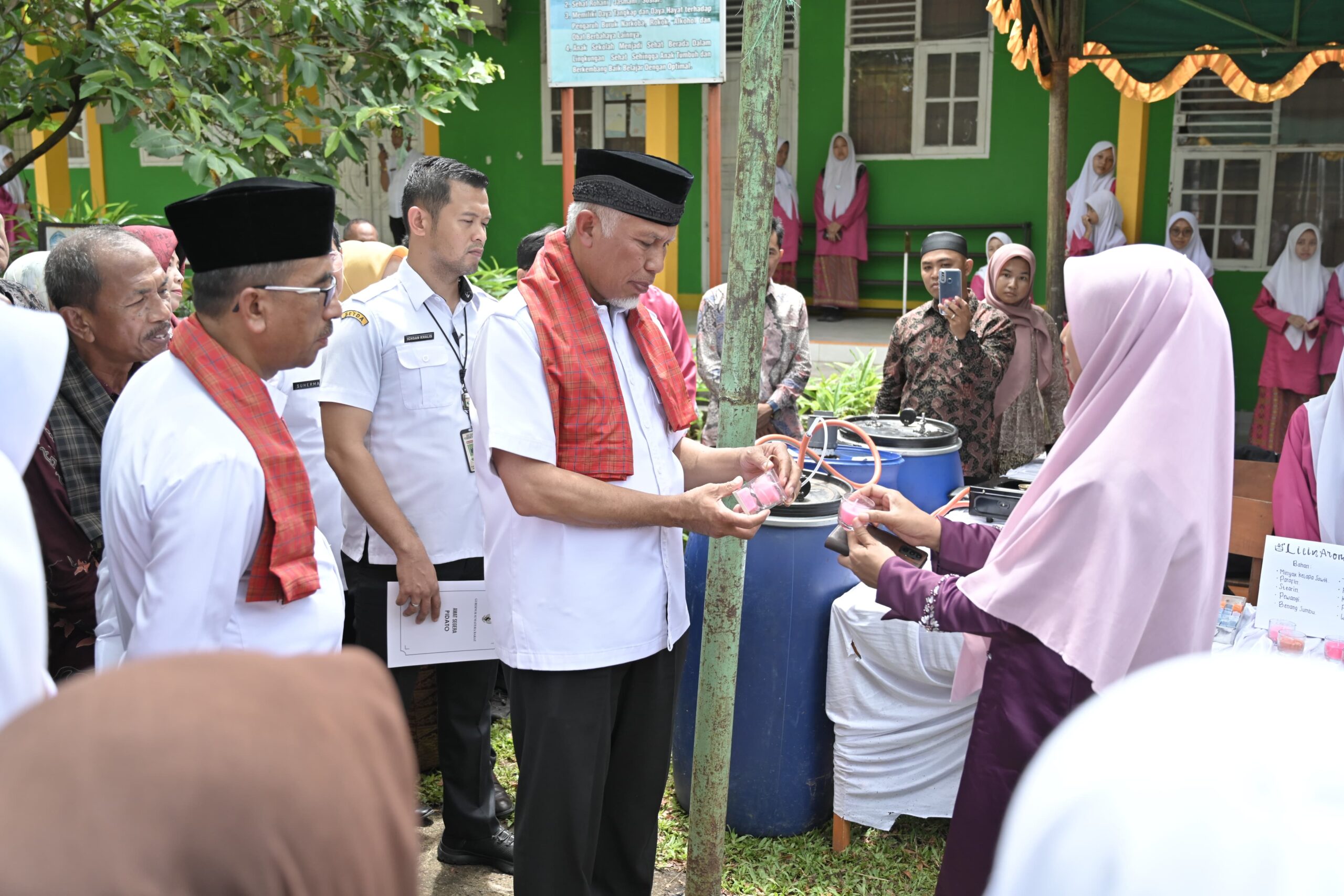 Pada kesempatan itu, Mahyeldi mengunjungi berbagai tenan yang menampilkan hasil kreativitas siswa SMANPABEL, yang bertujuan untuk membentuk karakter kewirausahaan dalam diri setiap siswa.