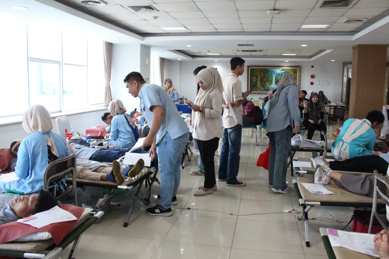 Di antara pendonor darah saat itu terlihat Pemimpin Bank Nagari Cabang Pasar Raya Hendri Masri dan Kabag Humas Affino Stephie.