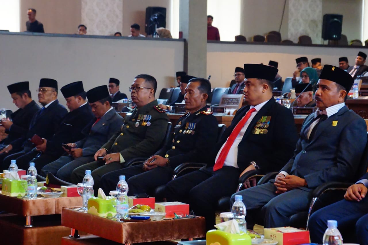 InfoLanggam – Bupati Dharmasraya, Sutan Riska Tuanku Kerajaan menghadiri rapat paripurna istimewa DPRD Dharmasraya dengan agenda mendengarkan pidato kenegaraan Presiden Republik Indonesia Joko Widodo dalam rangka Hari Ulang Tahun (HUT) ke-79 RI secara daring di ruang rapat utama DPRD Dharmasraya, Jumat (16/8/2024).