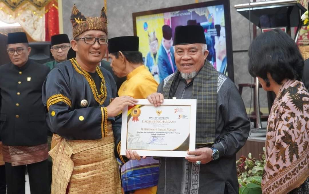 Penghargaan berupa piagam dan pin emas berlogo Pemko Padang itu diserahkan pada saat Rapat Paripurna Istimewa DPRD Kota Padang dalam rangka Hari Jadi Kota Padang ke-354, Senin (7/8/2023).