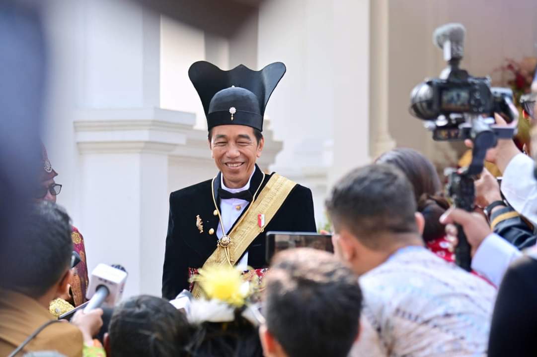 Langgam.id – Presiden Joko Widodo tampil mengenakan pakaian adat ageman songkok singkepan ageng pada Upacara Peringatan Detik-Detik Proklamasi dalam rangka Hari Ulang Tahun Ke-78 Republik Indonesia pada Kamis, 17 Agustus 2023. Pakaian tersebut merupakan pakaian khas Keraton Kesunanan Surakarta.