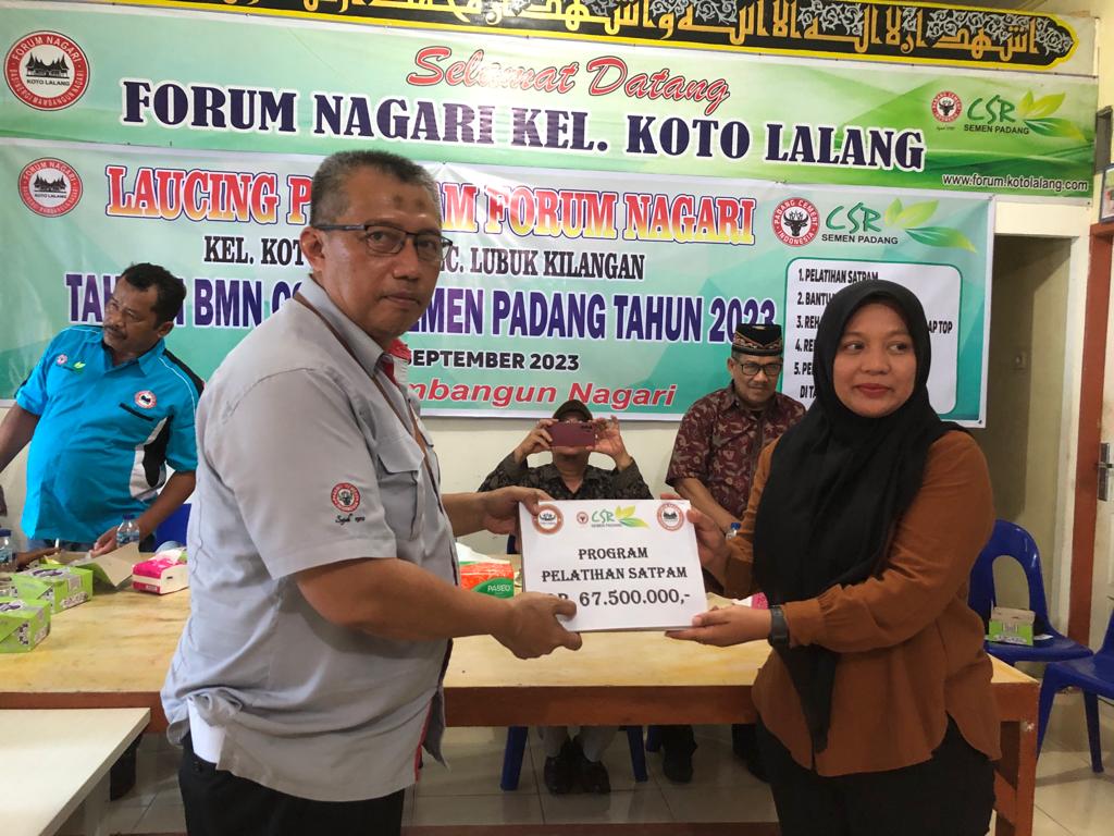 Ketua Forum Nagari Kelurahan Koto Lalang Arifin mengatakan, program pelatihan satpam ini merupakan satu dari lima program Forum Nagari Koto Lalang yang didukung penuh oleh PT Semen Padang. Selain pelatihan satpam, juga ada bantuan pendidikan untuk pelajar rumah tangga miskin.