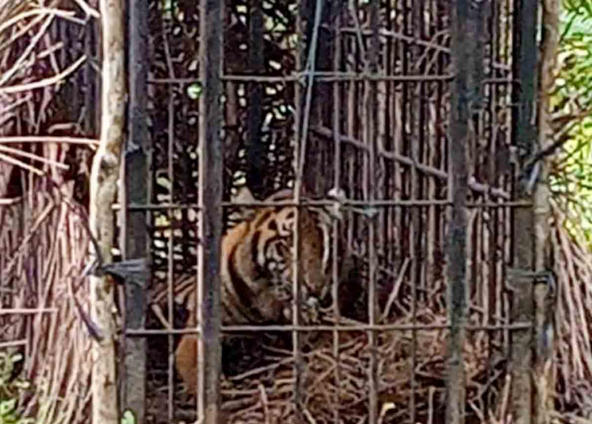 Harimau Sumatera yang masuk perangkap di Maua Hilia, Jorong Kayu Pasak Timur, Nagari Salareh Aia, Kecamatan Palembayan, Kabupaten Agam. (Foto: Dok. BKSDA Sumbar)