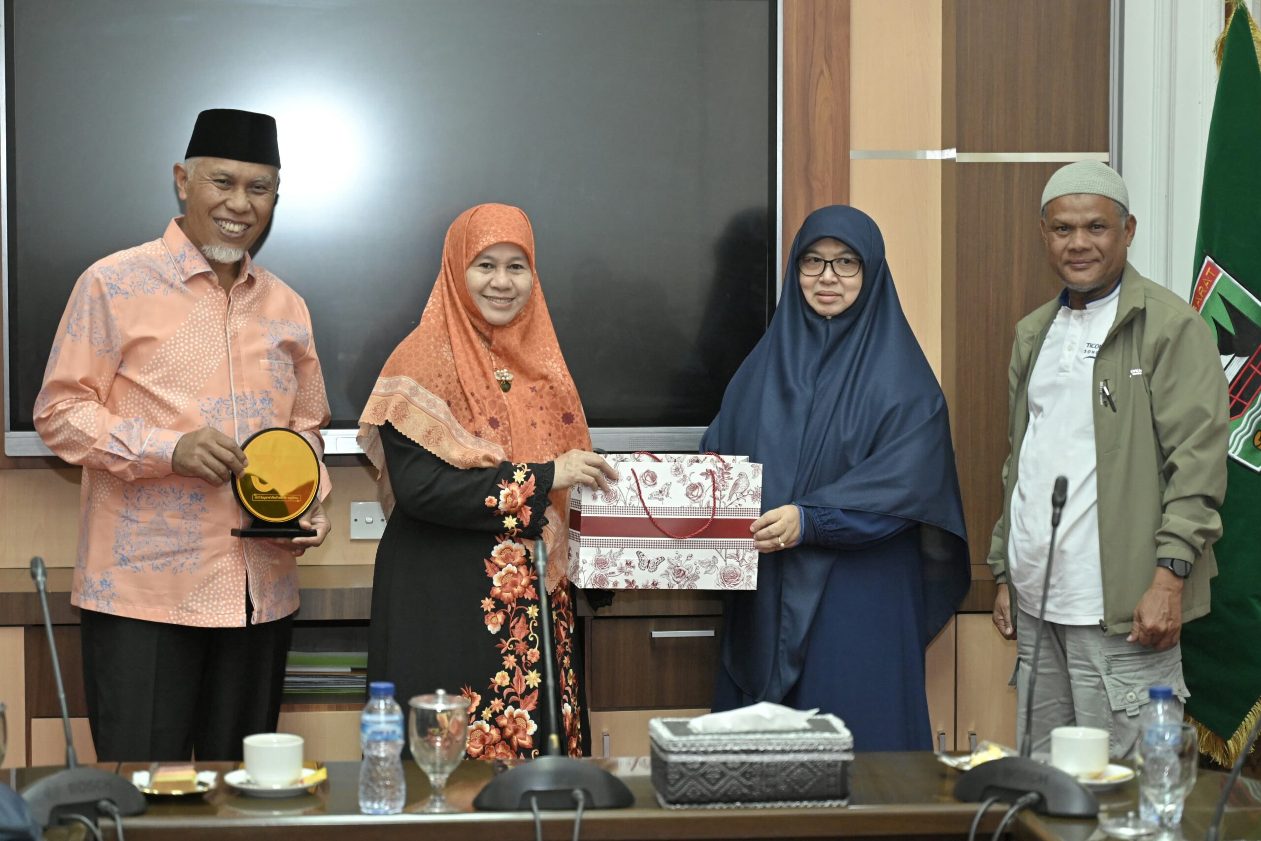 “Alhamdulillah, hari ini kita kedatangan tak kurang 35 orang tamu dari Provinsi Satun. Salah satu provinsi dengan penduduk mayoritas muslim di Thailand. Kita sangat senang bisa bertukar pikiran terkait pengembangan ekonomi umat, termasuk pengembangan koperasi bersama perwakilan dari Koperasi Islam Ibnu Auf. Salah satu koperasi terbesar di sana,” ujar Mahyeldi.