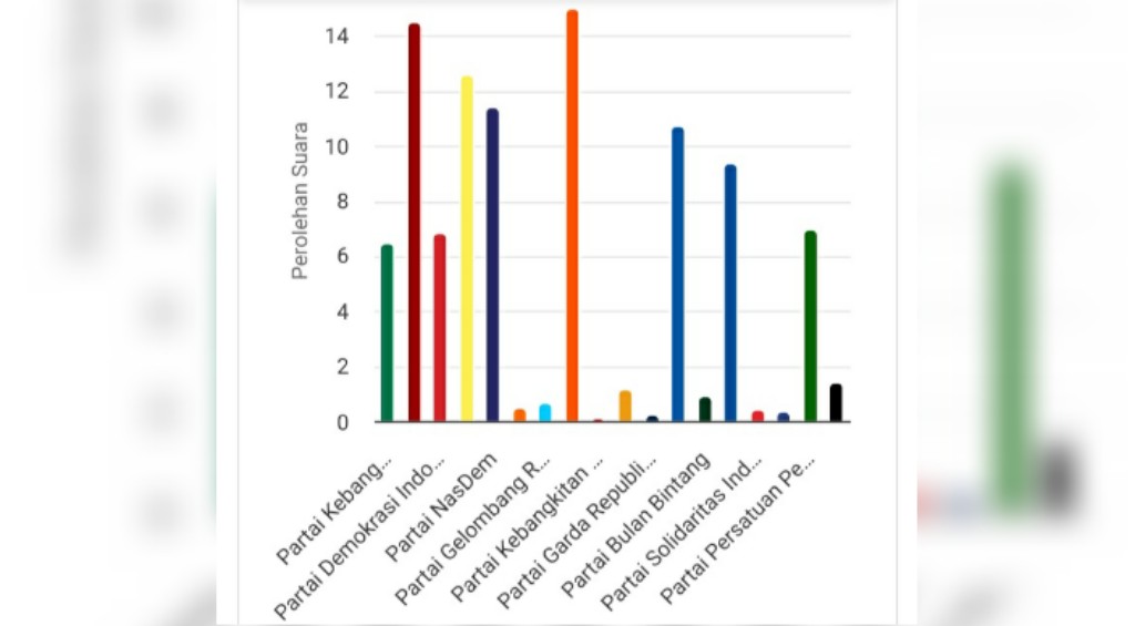 Dari data tersebut, untuk sementara PKS sudah memperoleh 262.486 suara atau 15,04 persen. Kemudian disusul Partai Gerindra 253.035 suara (14,5 persen) di posisi kedua dan Partai Golkar di posisi ketiga dengan 219.902 suara (12,6 persen).