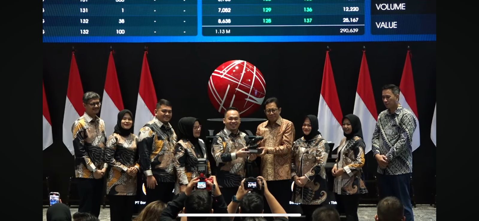 Seluruh jajaran direksi dan komisaris SPRE hadir dalam peresmian sebagai perusahaan ke 26 yang melantai di BEI pada tahun 2024 ini.