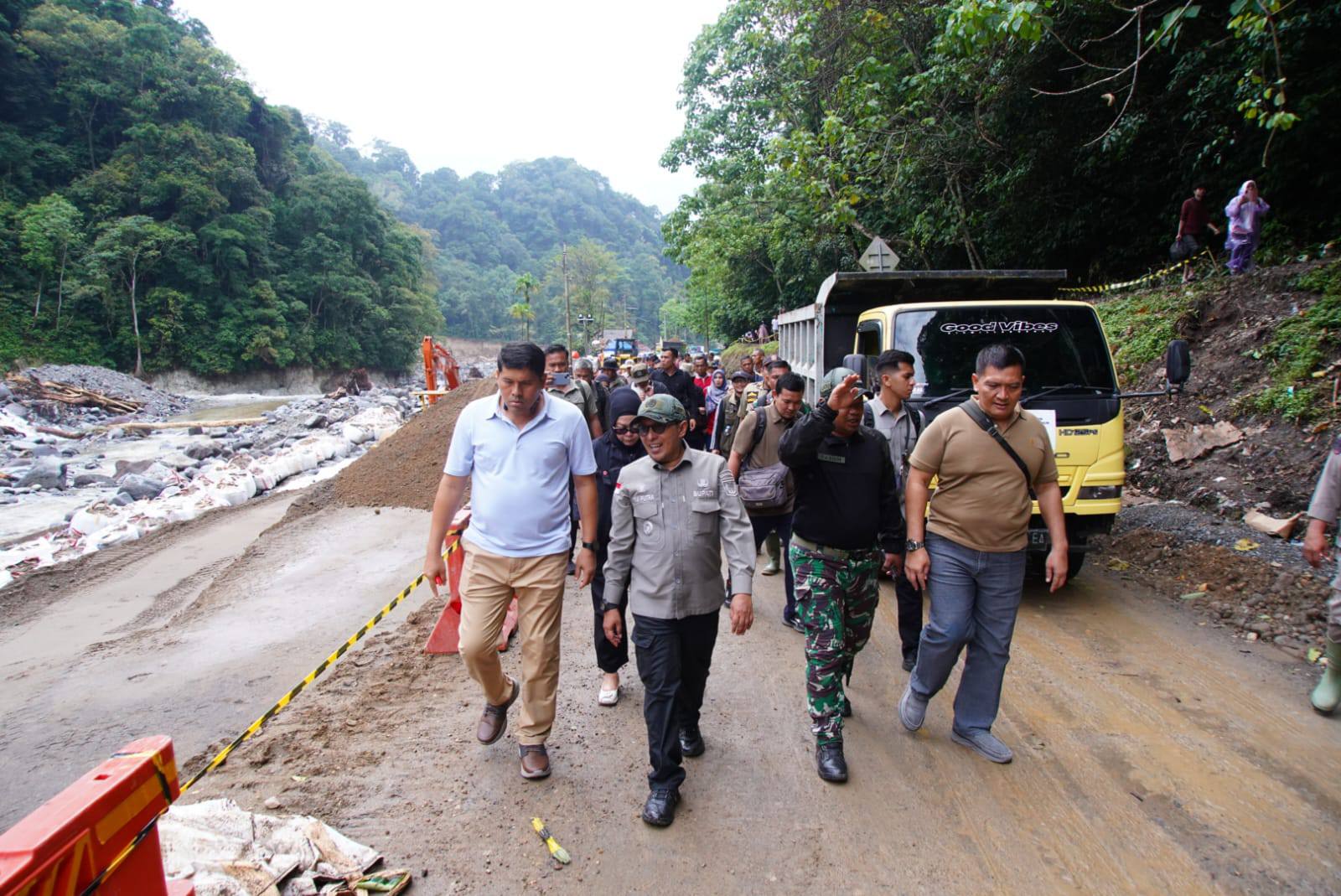 InfoLanggam – Bupati Tanah Datar Eka Putra bersama Wali Kota Padang Panjang Hendri Arnis, Dandim 0307 TD, Kapolres Padang Panjang dan PPK 1 BPJN Sumatra Barat (Sumbar) Noor Arias Syamsul melakukan asesmen terkait pekerjaan perbaikan jalan dan normalisasi sungai di Lembah Anai, Minggu (7/12/2025).