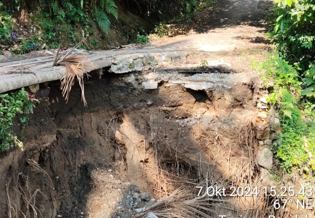 Akses jalan yang biasanya dapat dilalui kendaraan roda empat kini hanya bisa dilewati kendaraan roda dua setelah longsor besar menghantam kawasan tersebut pada pertengahan Mei 2024. Kondisi ini berdampak serius pada aktivitas ekonomi dan mobilitas masyarakat setempat.